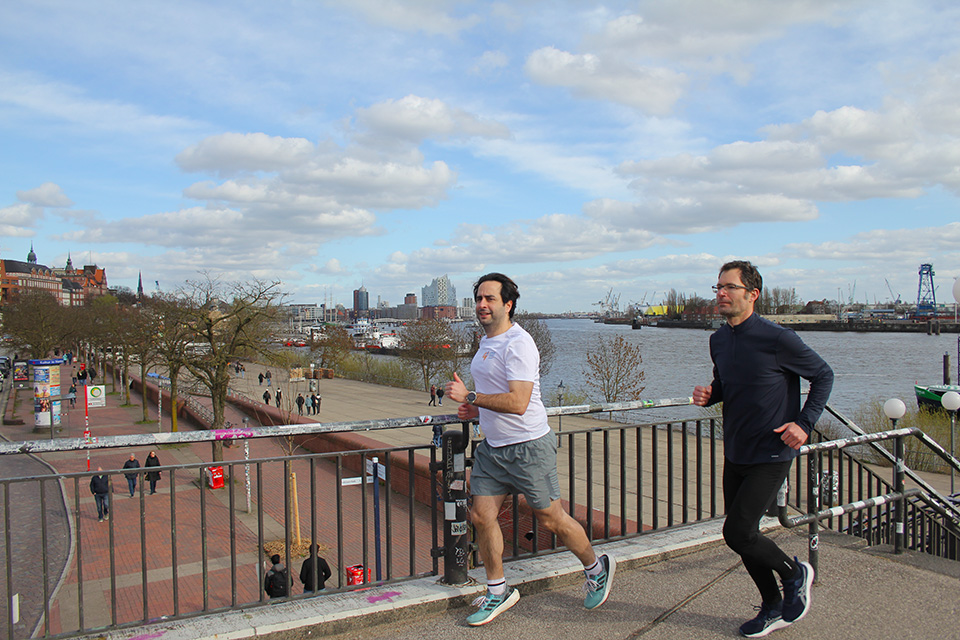Continuing toward the waterfront, runners reach the harbor area around Baumwall and the famous Landungsbrücken. This part of the route reveals the maritime soul of Hamburg. The Port of Hamburg, Germany’s largest seaport, stretches along the River Elbe and remains one of Europe’s most important shipping hubs. From here, guests enjoy views of the spectacular Elbphilharmonie, Hamburg’s modern architectural icon and one of the world’s most celebrated concert halls, rising above a historic warehouse along the harbor.